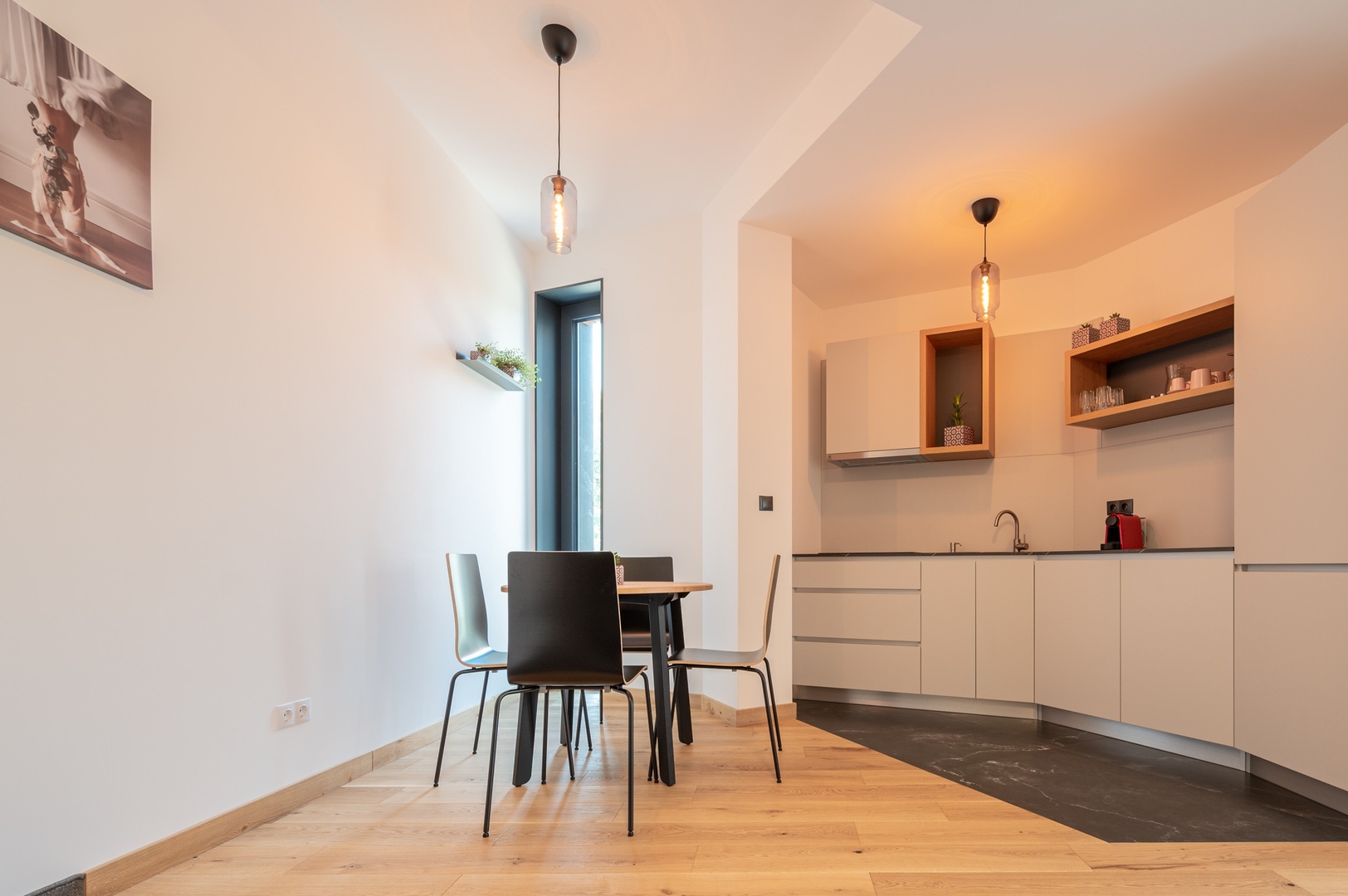 Practice your morning yoga or admire the sunset by a glass of wine on one of the two terraces located on the top floor. This brand new boutique property is located in the centre, 5 minutes walk from Piata Unirii. It houses a total of 6 modern apartments and a common area suitable for small meetings. Professional cleaning and disinfection protocol. Fast and easy access through the property with a code-based system. Private indoor secured parking Laid-back coworking space to use on request.