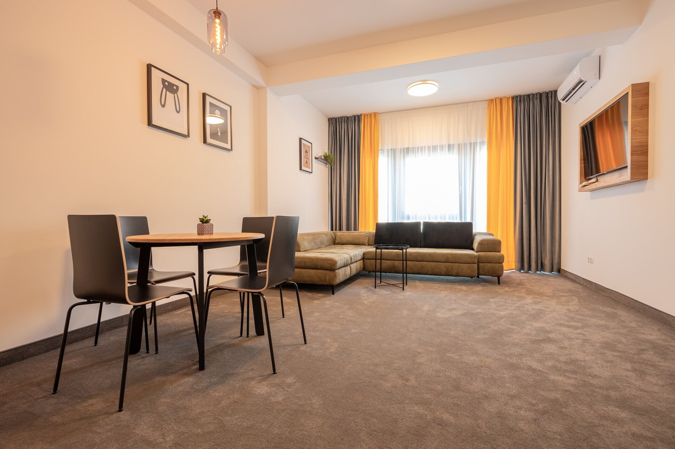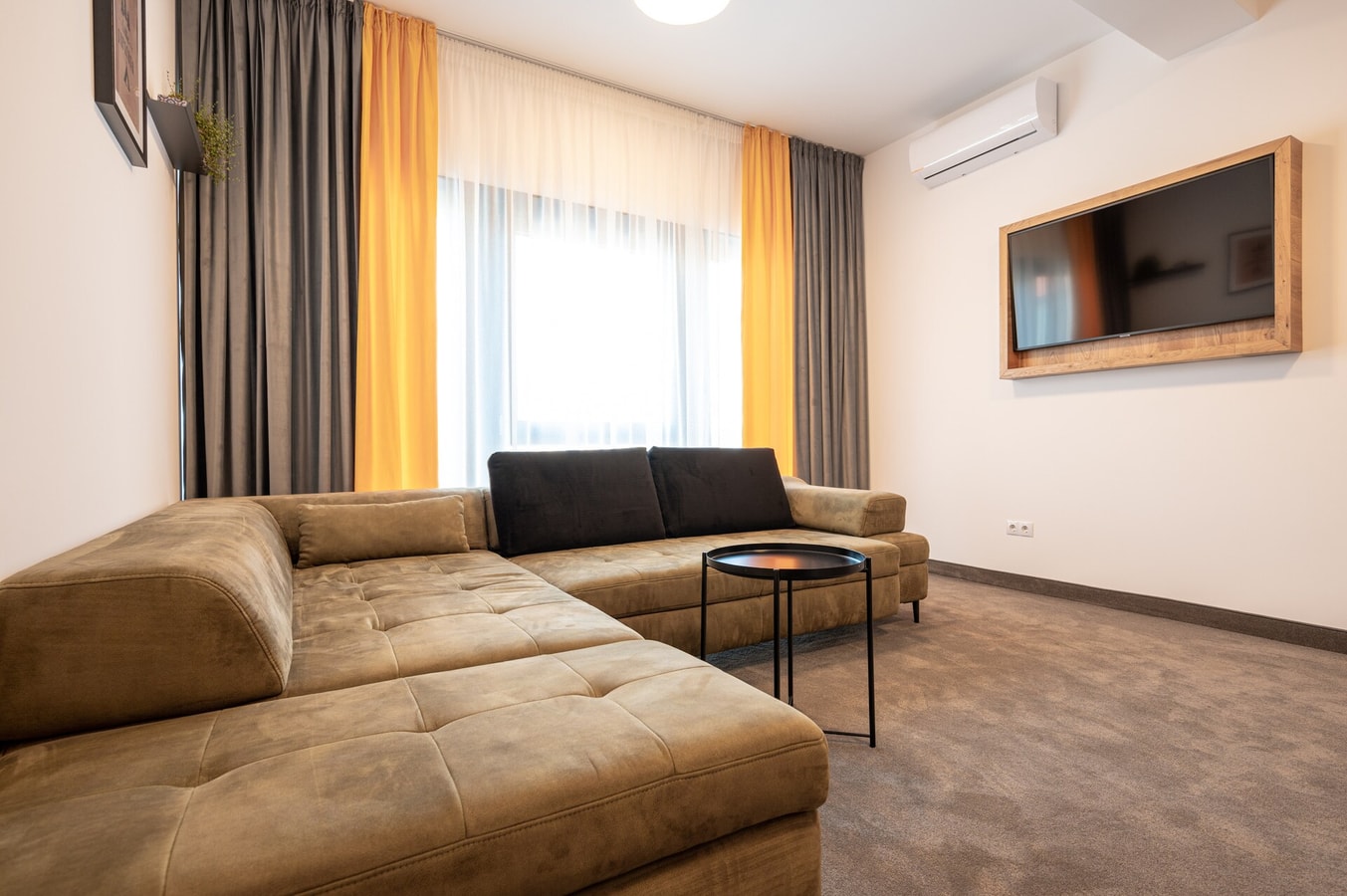 Practice your morning yoga or admire the sunset by a glass of wine on one of the two shared terraces located on the top floor. This brand new boutique property is located in the centre, 5 minutes walk from Piata Unirii. It houses a total of 6 modern apartments and a common area suitable for small meetings. Professional cleaning and disinfection protocol. Fast and easy access through the property with a code-based system. Laid-back coworking space to use on request.