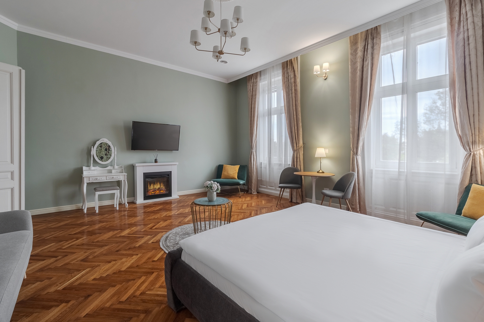Situated at the heart of Oradea, Central Park is the result of a complex modernization project. The location has a welcoming design and it keeps some of the original and well-preserved elements of the building. The property houses two chic apartments with a lovely view over the park and the Orthodox Cathedral, and six comfy double rooms. Professional cleaning and disinfection protocol. Fast and easy access through the property with a code-based system.