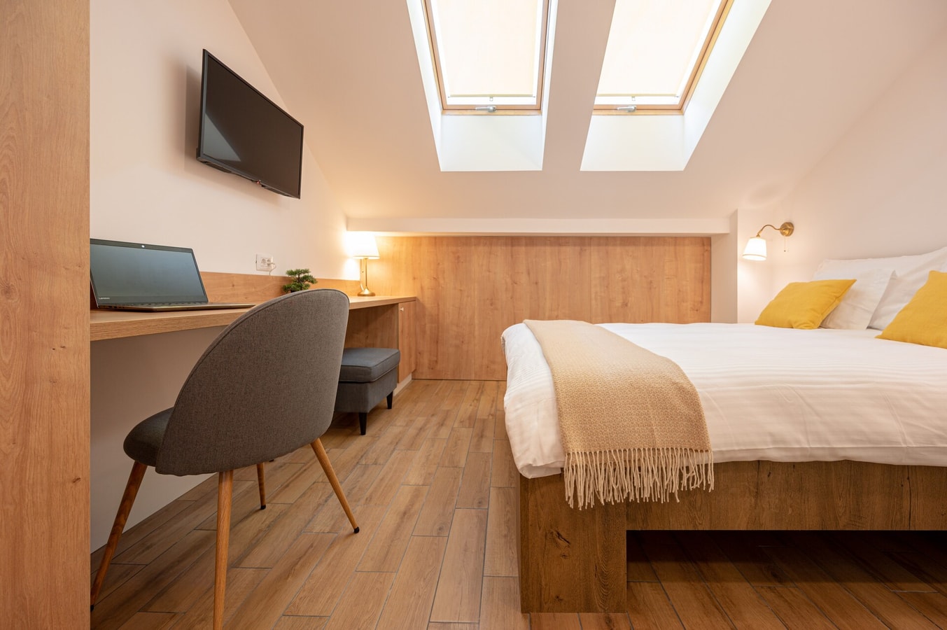 Situated at the heart of Oradea, Central Park is the result of a complex modernization project. The location has a welcoming design and it keeps some of the original and well-preserved elements of the building. The property houses 3 chic apartments with a lovely view over the park and the Orthodox Cathedral, and six comfy double rooms. Professional cleaning and disinfection protocol. Fast and easy access through the property with a code-based system.