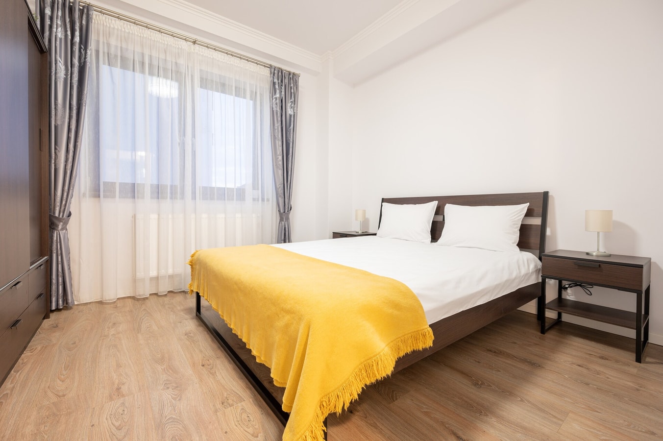 The apartment features two inviting bedrooms, one with a king-size bed (160x200 cm) and the other with a queen-size bed (140x200 cm), each designed to ensure a restful night’s sleep.
