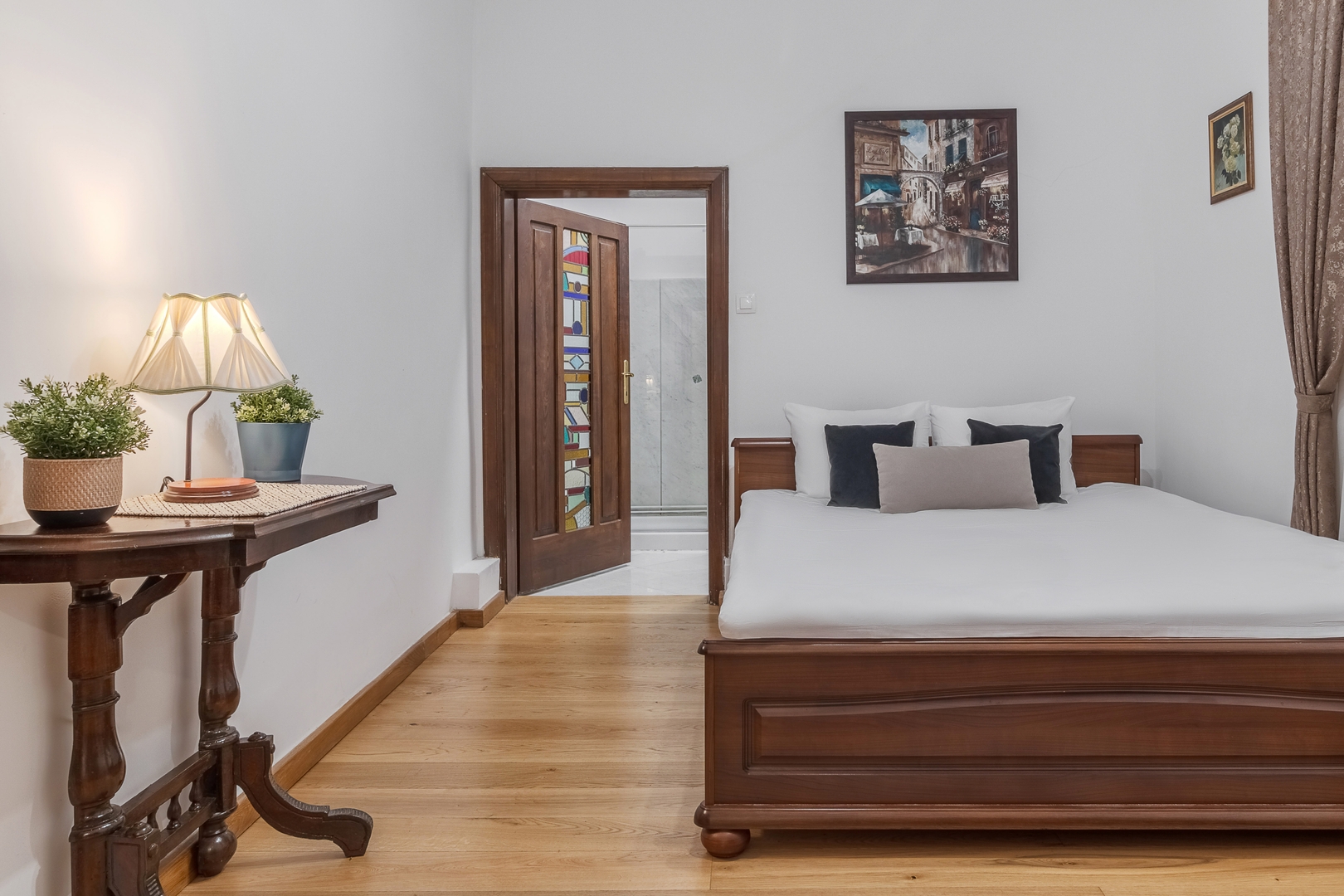 This charming room was designed in a classical yet smart line, with fine touches of masterfully crafted oak wood.