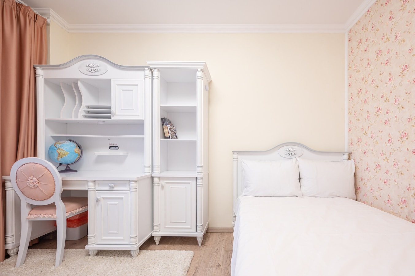 The third room, designed in a classical style with solid wood accents, has an elegant, antique flair. In addition to being a charming sitting area, it also doubles as a dining space or extra sleeping area for two guests, if needed.