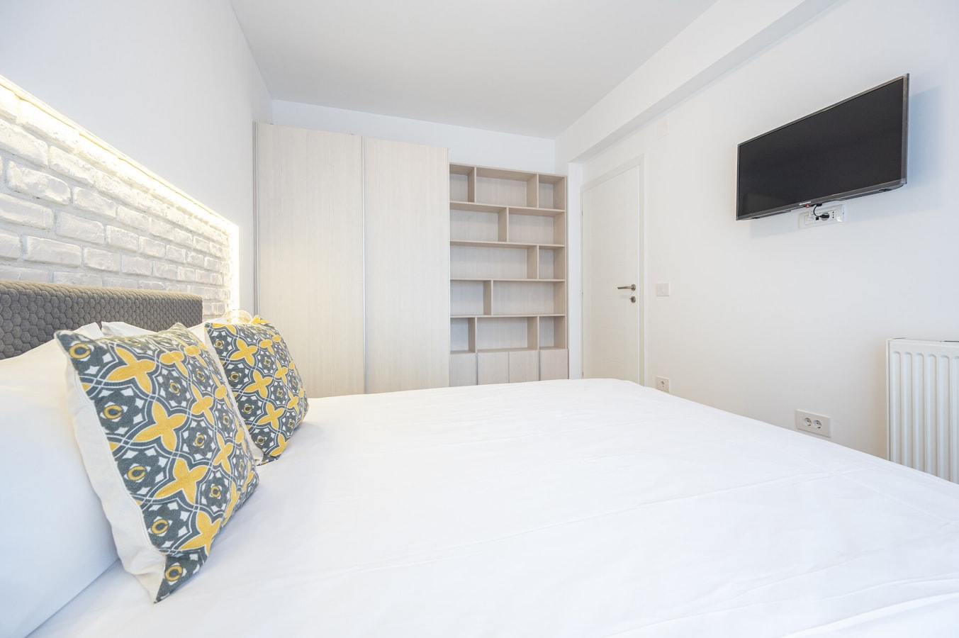 Enjoy a good night’s sleep in the queen-size bed. Just by the bedroom, you will find the bathroom which has a walk-in shower, so you can wake up feeling refreshed and relaxed after a long day exploring the streets of Oradea.