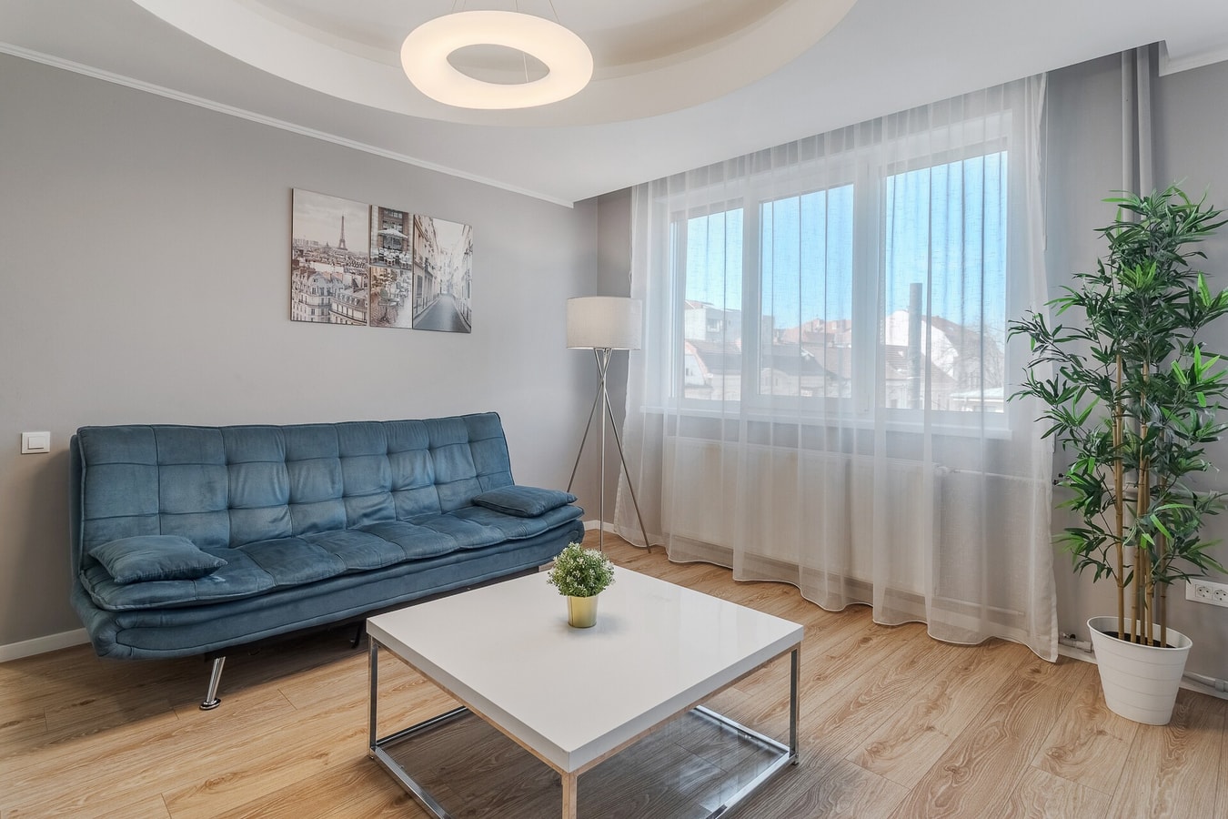 This is the perfect place to discover charming Oradea with its beautiful palaces and Medieval Fortress. Convenient location, 1-minute walk from the pedestrian street with beautiful Art Nouveau architecture. Discover a new home every day in this modern flat. The clean, stylish lines and calm design of the interior will make you feel at ease. We use advanced cleaning and disinfection protocols to ensure your safety.