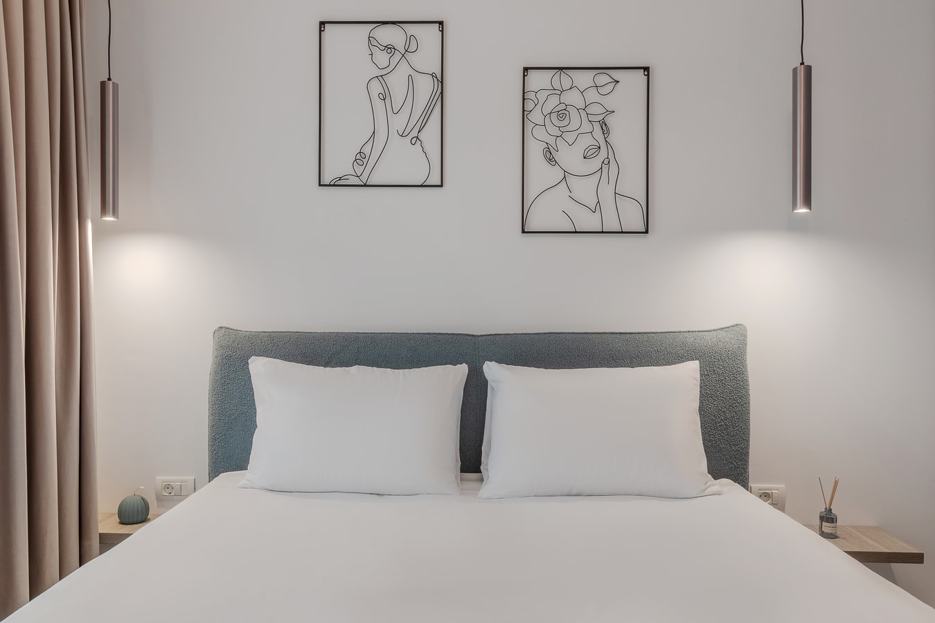 This modern apartment welcomes you with a calm and refined atmosphere, blending soft colors, premium textures, and contemporary design. The living room features elegant furniture, ambient lighting, and a smart TV, a perfect space to relax after exploring the city. Please note that the sofa is not suitable for sleeping.