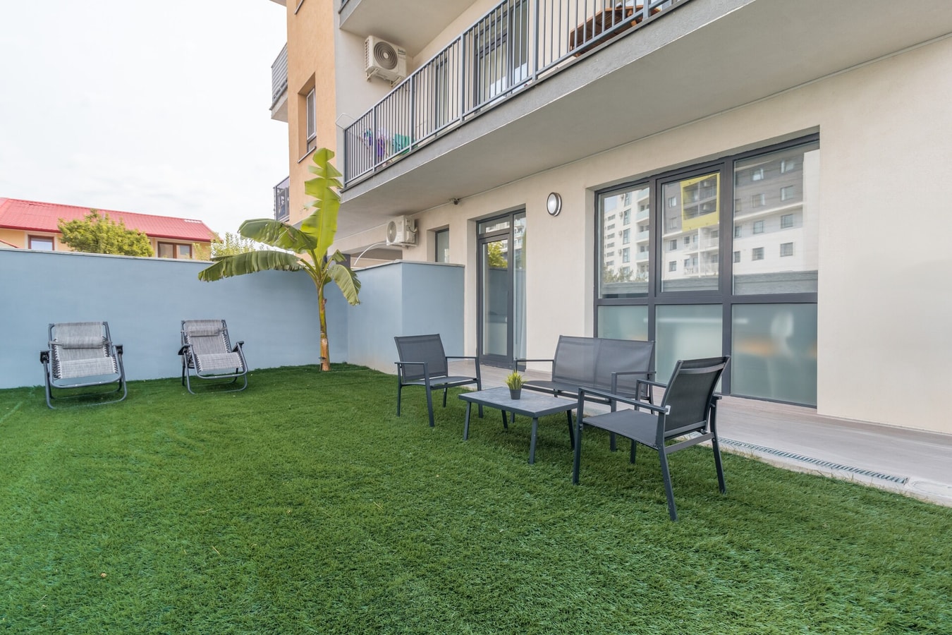 Step into our stunning and brand-new apartment, where a perfect blend of style and elegance awaits you. Minutes away from the vibrant Shopping Park and the charming Old Town, this place is sure to capture your heart. Enjoy the added perks of free parking and seamless access with our smart lock system. We prioritize your safety with our professional cleaning and disinfection protocols. And don't forget to take advantage of the superb ground floor terrace for some truly memorable moments!