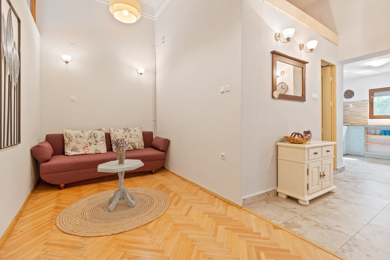 Nestled in the heart of Oradea, just a stone's throw away from Unirii Square, the pulsating epicentre of the city, Elle Home offers an enchanting escape that marries convenience with tranquillity. Situated on the ground floor within a picturesque courtyard, this charming abode stands beneath the protective embrace of a venerable chestnut tree, casting dappled shadows that dance throughout the day.