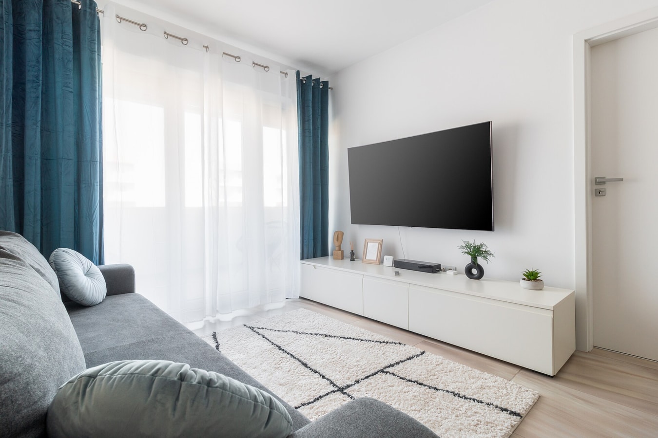 Step into the living room, where large windows let in plenty of natural light, creating a warm and inviting atmosphere. You can lounge on the comfy sofa, catch up on your favourite shows on the flat-screen TV, and stay connected with high-speed internet.