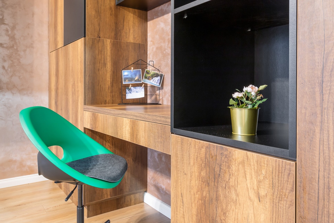 Discover the perfect blend of modern charm and cosy comfort in this inviting flat. Step inside to find a stylish space accented with beautiful oak wood touches. Lounge on the sleek corner sofa, which easily transforms into a double bed for your relaxation. Need to catch up on work? A practical desk awaits you.