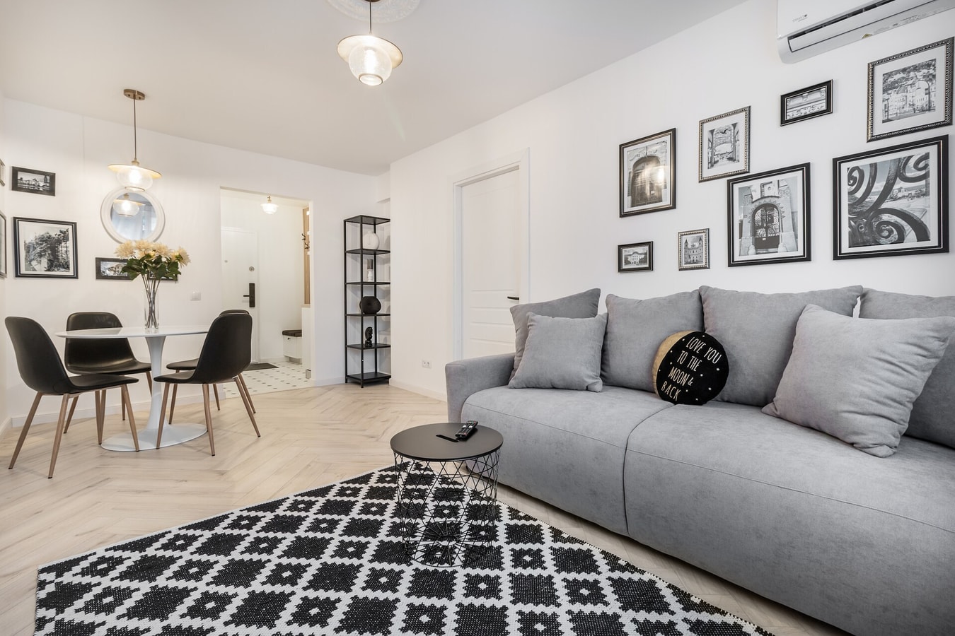 Welcome to our stylish new apartment! We're excited to have you here. Enjoy the prime location steps away from Central Park. Experience comfort with modern amenities. Expect impeccable cleanliness and effortless entry with our code-based system. Your ideal stay starts now with easy ground-floor access!