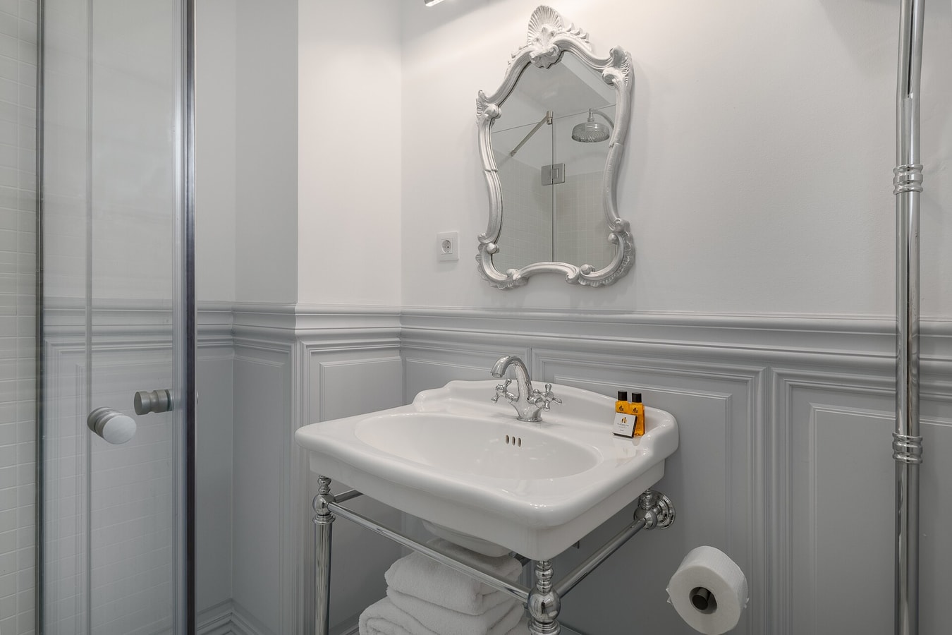 Unwind in our bedroom, featuring a plush queen-size bed for a restful night's sleep after your adventures. Refresh in our stylish bathroom with a walk-in shower, complete with fluffy towels and indulgent amenities.