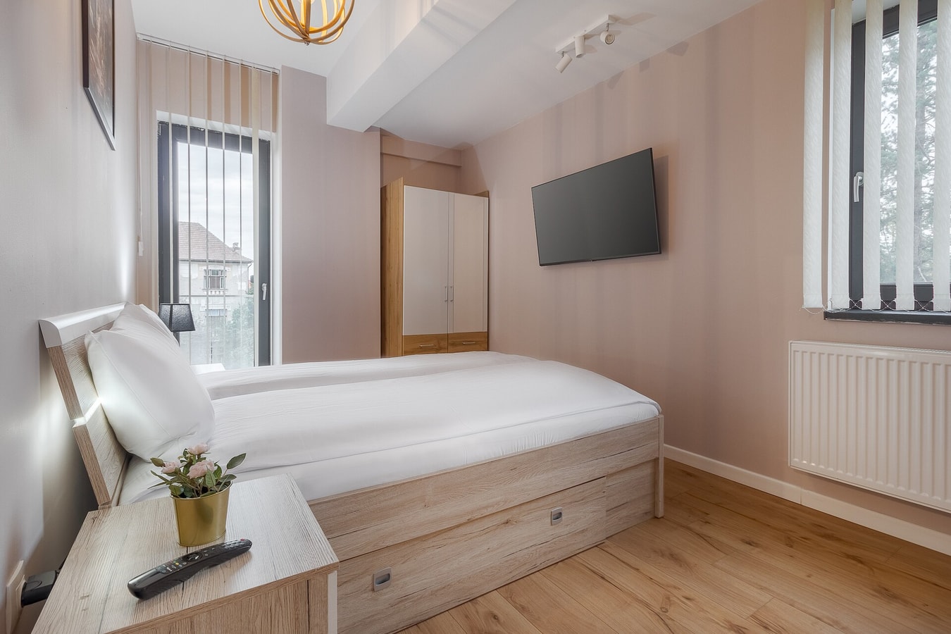 Your stay in our apartment promises utmost comfort and convenience. Nestled within a welcoming and culturally rich neighbourhood, you'll find an array of attractions just a short 5-10 minute stroll away. Whether you're drawn to the charm of the Old Town (0.5 km) with its splendid Secession and Eclectic Palaces, delightful specialty coffee spots, and local eateries, or you prefer the historical allure of the Medieval Fortress (2 km) with its enriching museums and upscale dining options, or even the thrill of Nymphaea Aquapark (2.5 km) for a day of active fun, you're in the heart of it all.