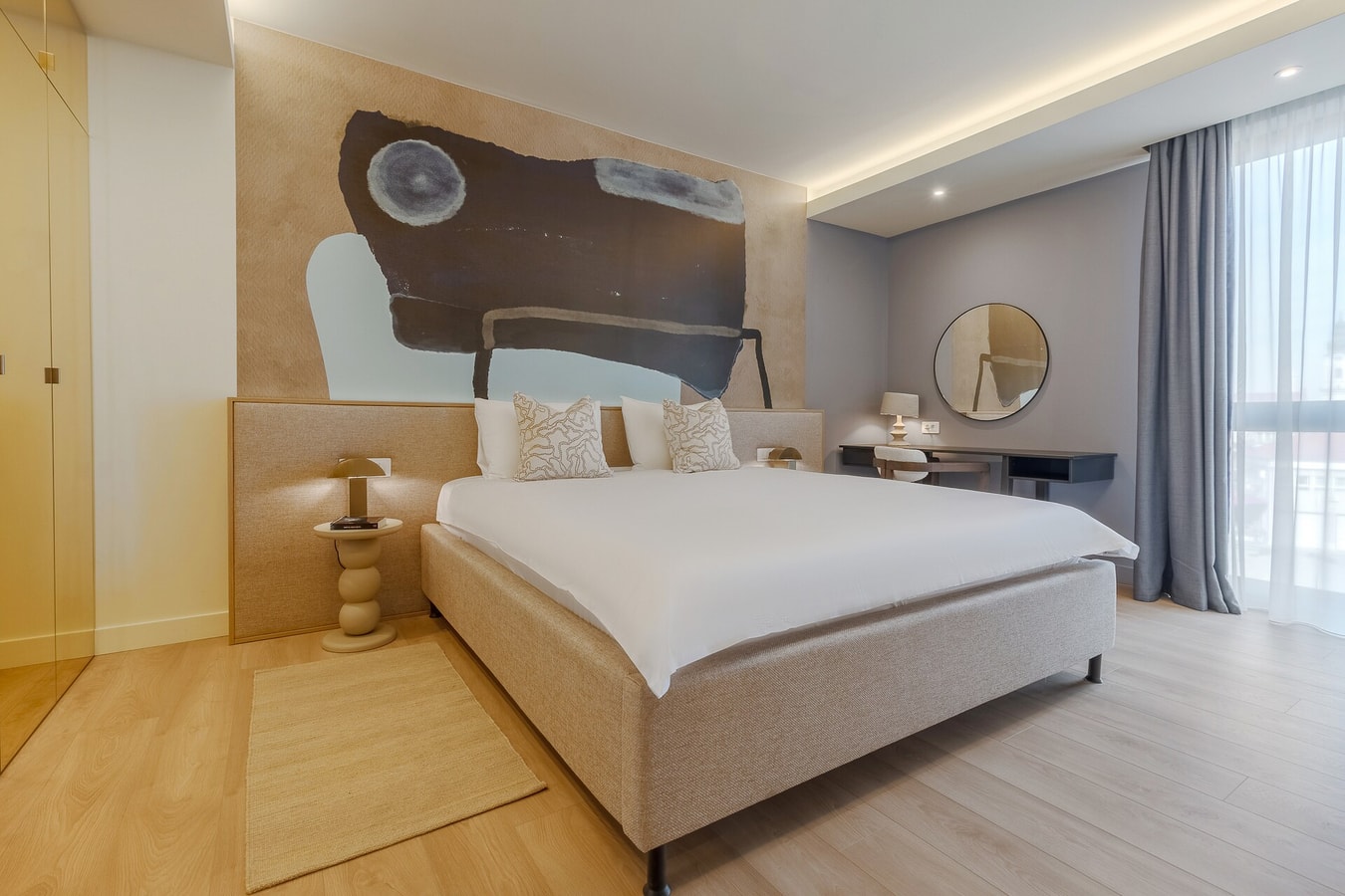Bedrooms: The apartment includes two beautifully designed bedrooms, each offering a peaceful retreat. The master bedroom features a king-sized bed, while the second bedroom offers a queen-sized bed, ensuring a restful night’s sleep. Both rooms are adorned with soft linens, tasteful decor, and ample storage space.