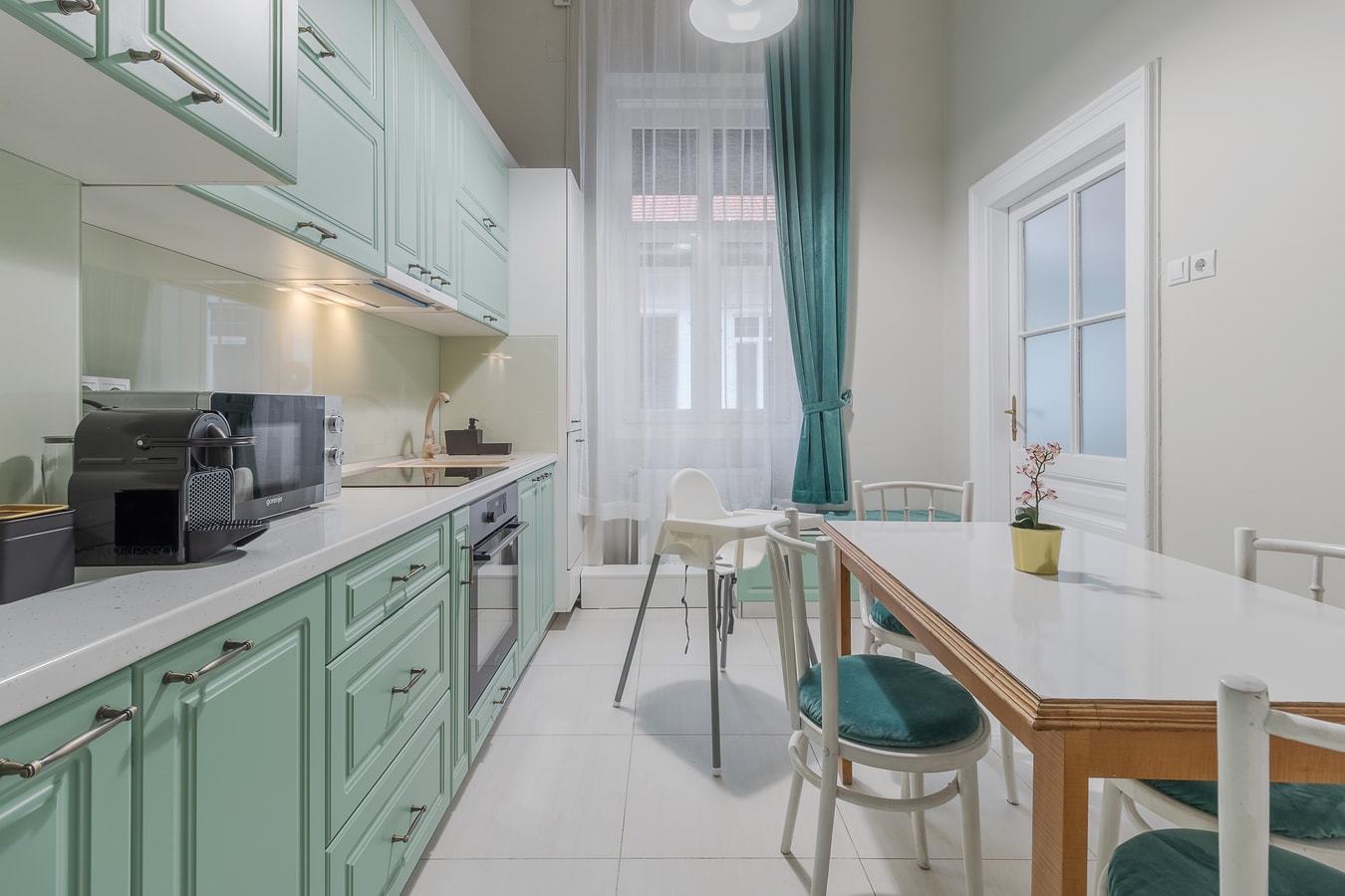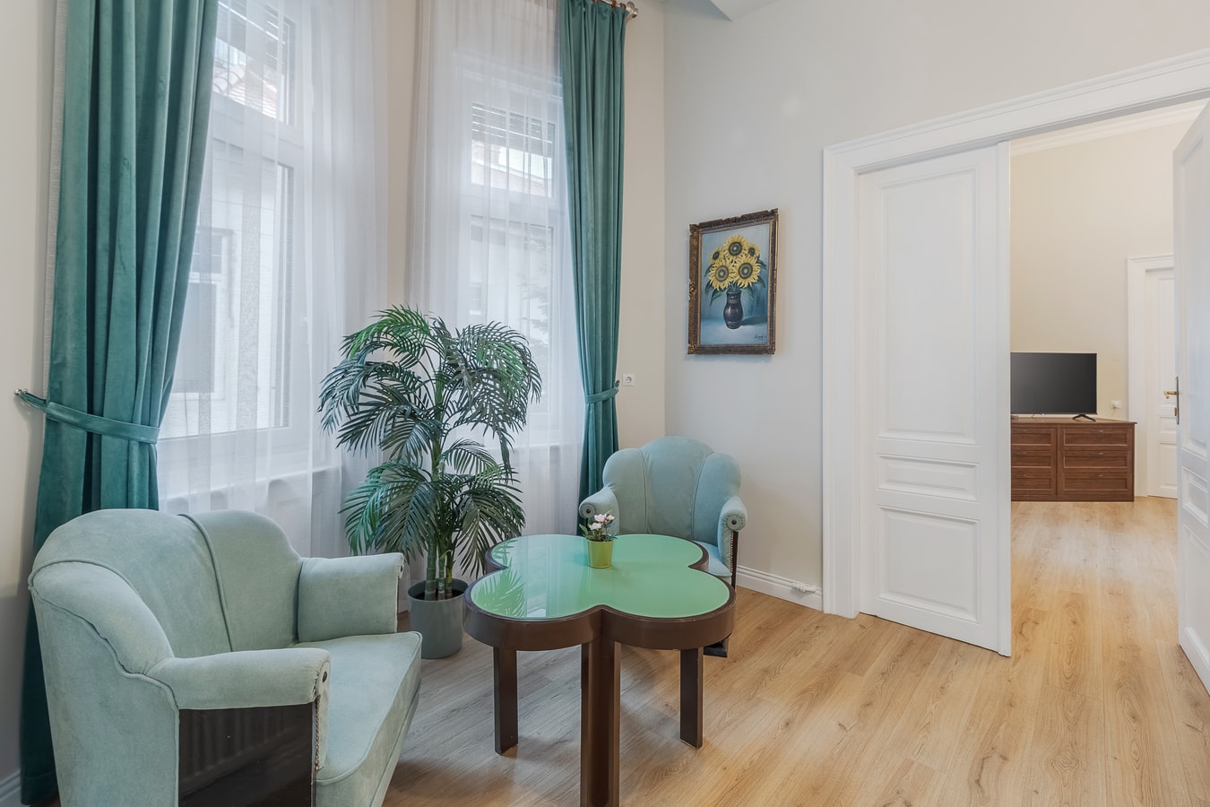 Located on Oradea’s main pedestrian street, Strada Republicii, the apartment is surrounded by beautiful Art Nouveau buildings, cozy cafés, restaurants, and boutique shops. Everything is within walking distance, including major landmarks like Union Square, the Black Eagle Palace, and the Crișul Repede River. It’s the perfect area to enjoy the charm, culture, and history of the city right outside your door.