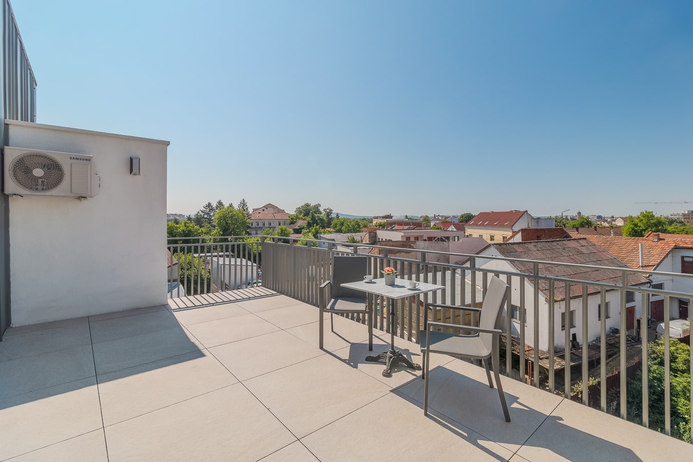 Enjoy this elegant and spacious penthouse just 10 minutes from the city center and steps from the river. With a stylish open living area, fully equipped kitchen, serene bedroom, chic bathroom, walk-in closet, and a sunny terrace, this apartment offers both comfort and luxury. Ideal for couples or remote workers seeking peace, design, and proximity to Oradea’s main attractions.